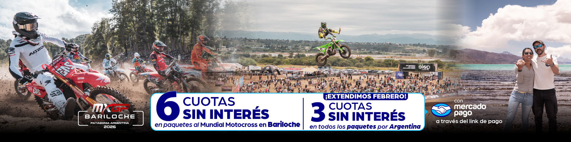 Bariloche con Mundial Motocross **DESTACADO** 5 días / 4 noches. Incluye: Traslados ida y vuelta al predio Motocross por 2 días / Entrada general día 7 y 8 Marzo Por persona | Base Doble Desde 781.890 ARS